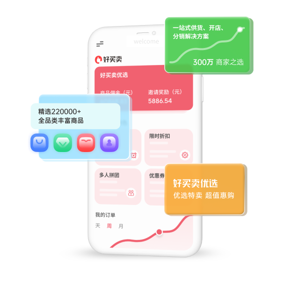好買(mǎi)賣(mài)優(yōu)選平臺(tái)對(duì)接國(guó)內(nèi)優(yōu)質(zhì)供應(yīng)商,精選220000+全品類(lèi)豐富商品,輕松開(kāi)店分銷(xiāo),做小生意買(mǎi)賣(mài),人人能創(chuàng)收。